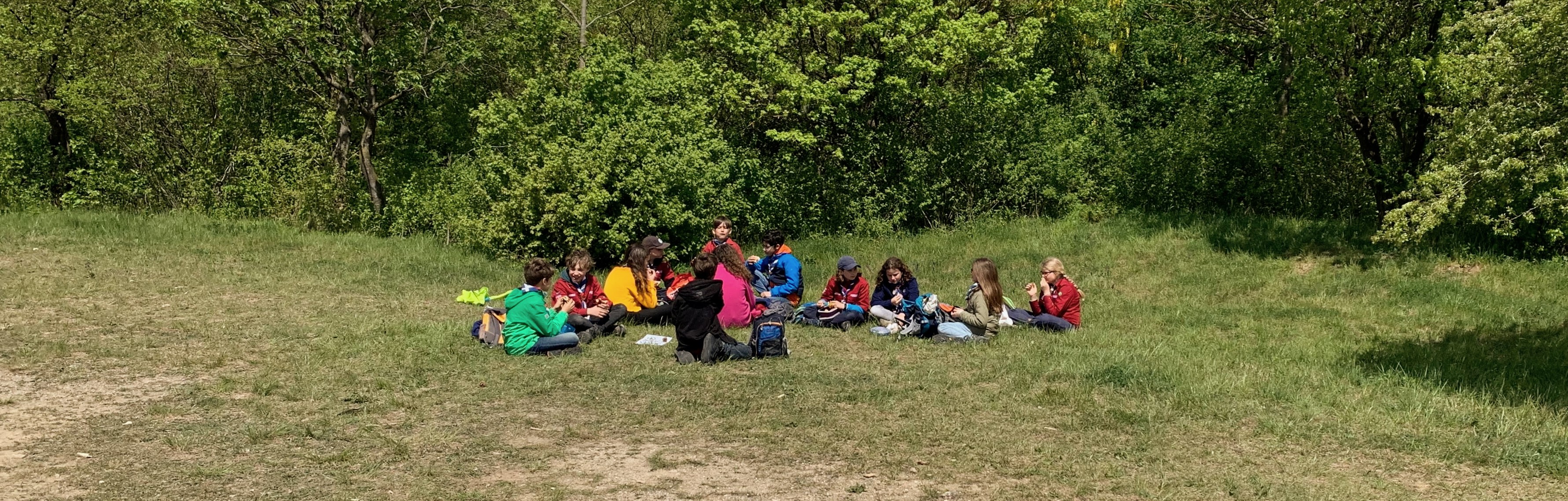 Während der längeren Anreise zum Maurer Wald haben sich die Kinder selbstständig in drei Patrullen aufgeteilt und sich auf das Event eingestimmt.