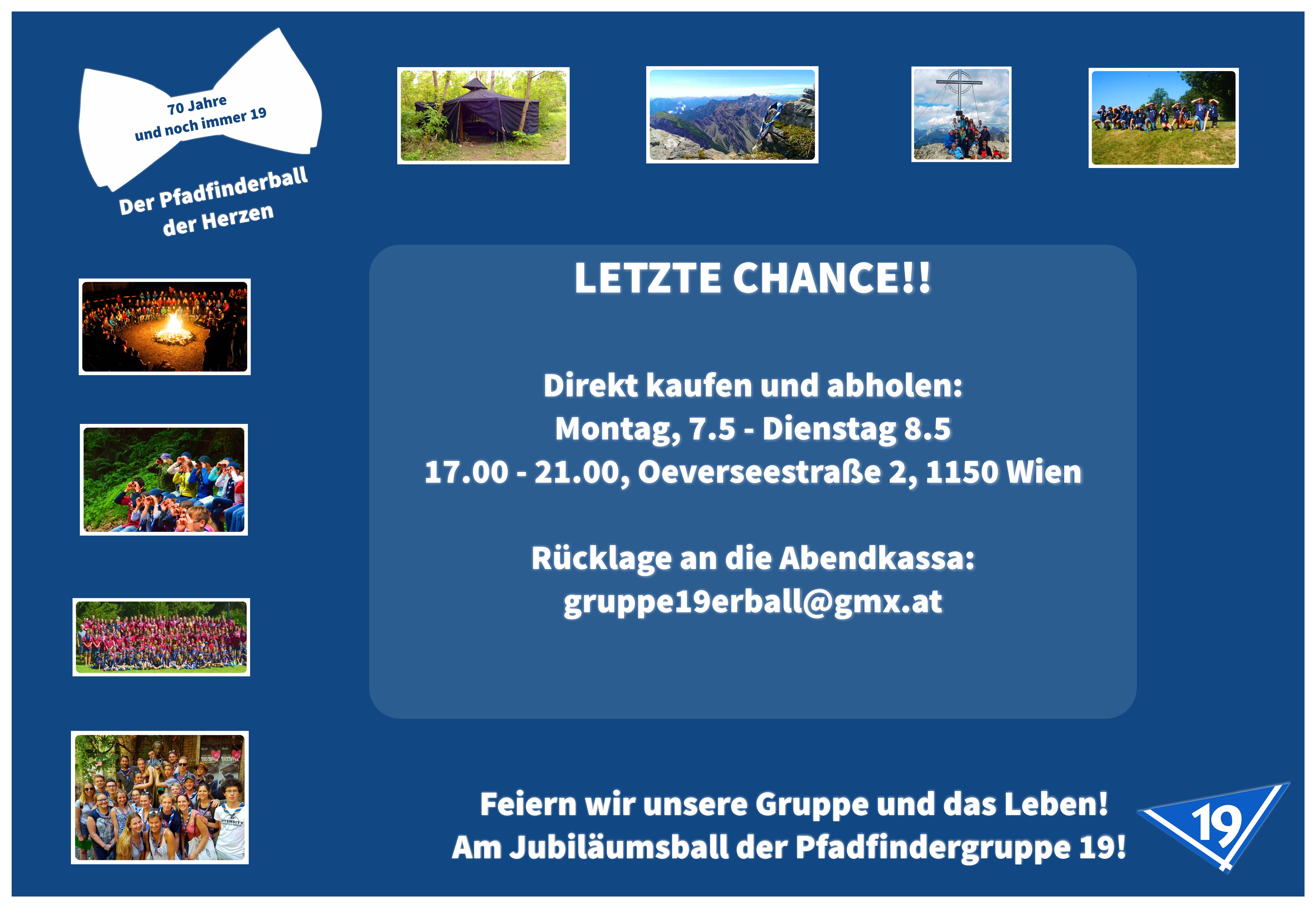 Deine Tickets kannst du dir auch zurücklegen lassen. Schreibe einfach ein Mail an: gruppe19erball@gmx.at