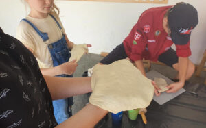 So wurde vor dem Pizza backen ein prasselndes Feuer vorbereitet und allerlei Teig fachgerecht geknetet. Danach konnten die einzelnen Pizzen gefüllt und als Calzoni in Alufolie verpackt werden; in der heißen Glut wurden sie schließlich zu schmackhaften Gerichten.