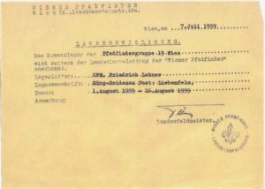 Am 17. August berichtet Gruppenfeldmeister Lehner den Buben der neu gegründeten Gruppe „19B“ vom Sommerlager in Seewalchen, um sie für den weiteren Pfadfinder-Unterricht und das Amt des Patrullenführers zu motivieren. Des weiteren werden fortan Punkte für die Anwesenheit in den Heimstunden und für das Schreiben von Logbuch-Einträgen vergeben, sowie Preise für die Anwerbung von Neulingen.