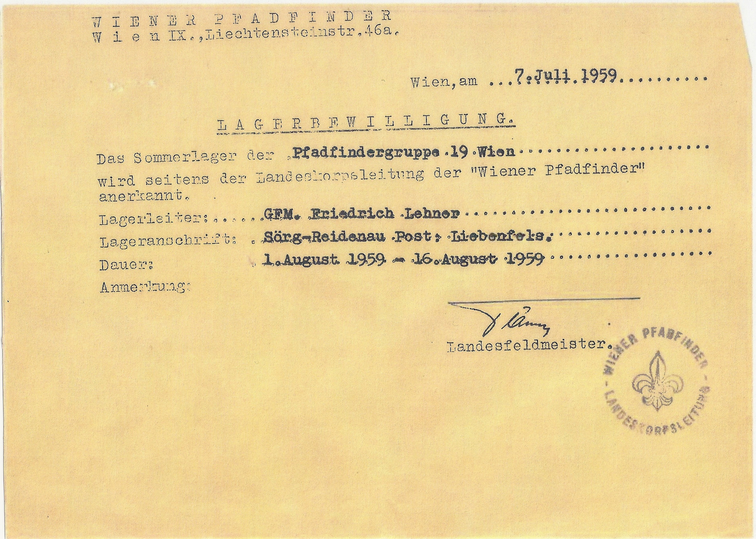 „Am Fronleichnamstag 12. Juni 1955 haben wir in Essling einen Teil der Pfadfindergruppe von Breitensee betrachten können, wie sie ihren Glauben standhaft bekannten. Darauf entschlossen sich einige Buben auch in Essling eine Gruppe zu gründen.“ (Logbuch der Gruppe „19B“)